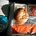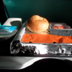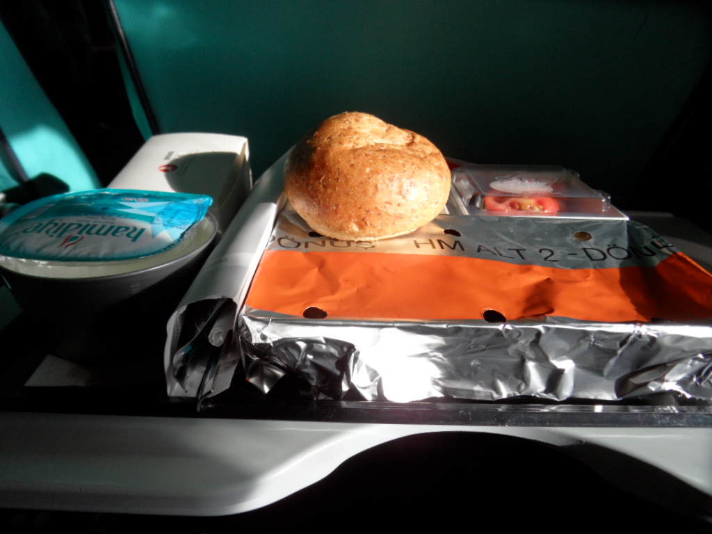 Kurz nach dem Start gab es auch gleich mal etwas zu futtern. Obwohl meine Freundin angegeben hatte, dass sie vegetarisches Essen möchte, bekam sie totes Tier. Oder eher gesagt ich bekam ihr totes Tier. Und sie meinen Fisch. 😉