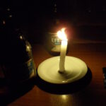 Der Herr fragte uns, ob wir Licht dabei haben. Am Handy. Naja, aber der Akku war leer. Und ohne Strom konnten wir es nicht laden. Er fragte uns, ob wir eine Kerze wollen und was er sonst noch für uns tun könnte. Da wir den ganzen Tag ohne Wasser waren, hatten wir langsam Durst. Meine Freundin meinte, ob er uns Wasser und Bier hätte.