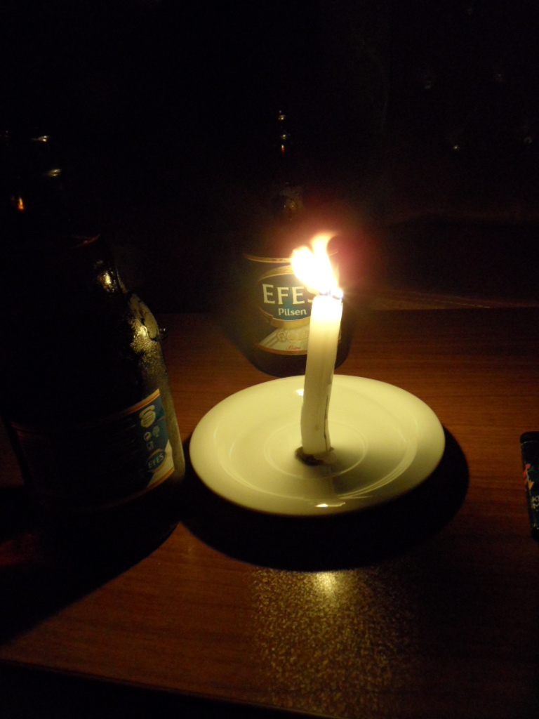 So ging er und kam nach einer Weile wieder. Mit Efes, Wasser und einer mini Kerze.