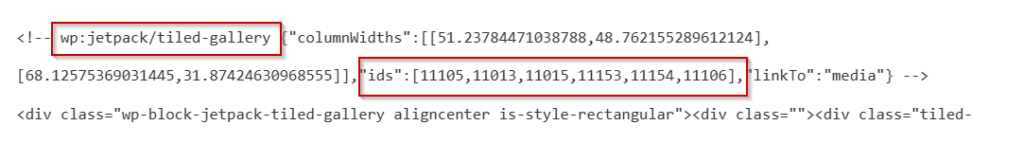 Das selbe gilt auch für die Galerien in Euren Beiträgen. Diese beinhalten nur die „ID’s“ der Bilder.