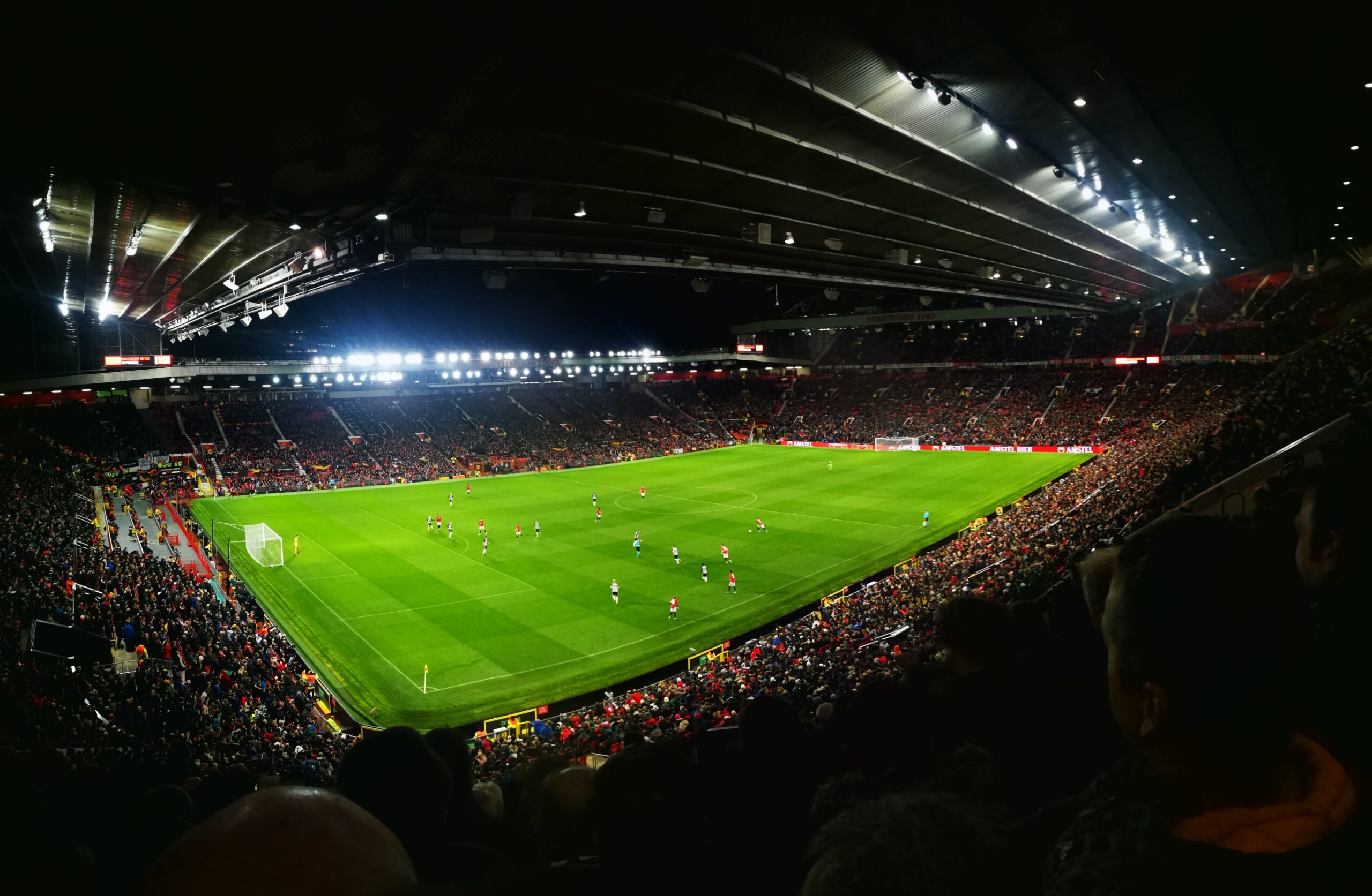 Der Name „Theatre of Dreams“ kommt nicht von ungefähr. Das Stadion – wie auf den Bildern zu sehen – hat keine klassische Flutlichtanlage wie wir es kennen, sondern die Spots an den Tribünendächern erinnern an die Beleuchtung eines Theaters