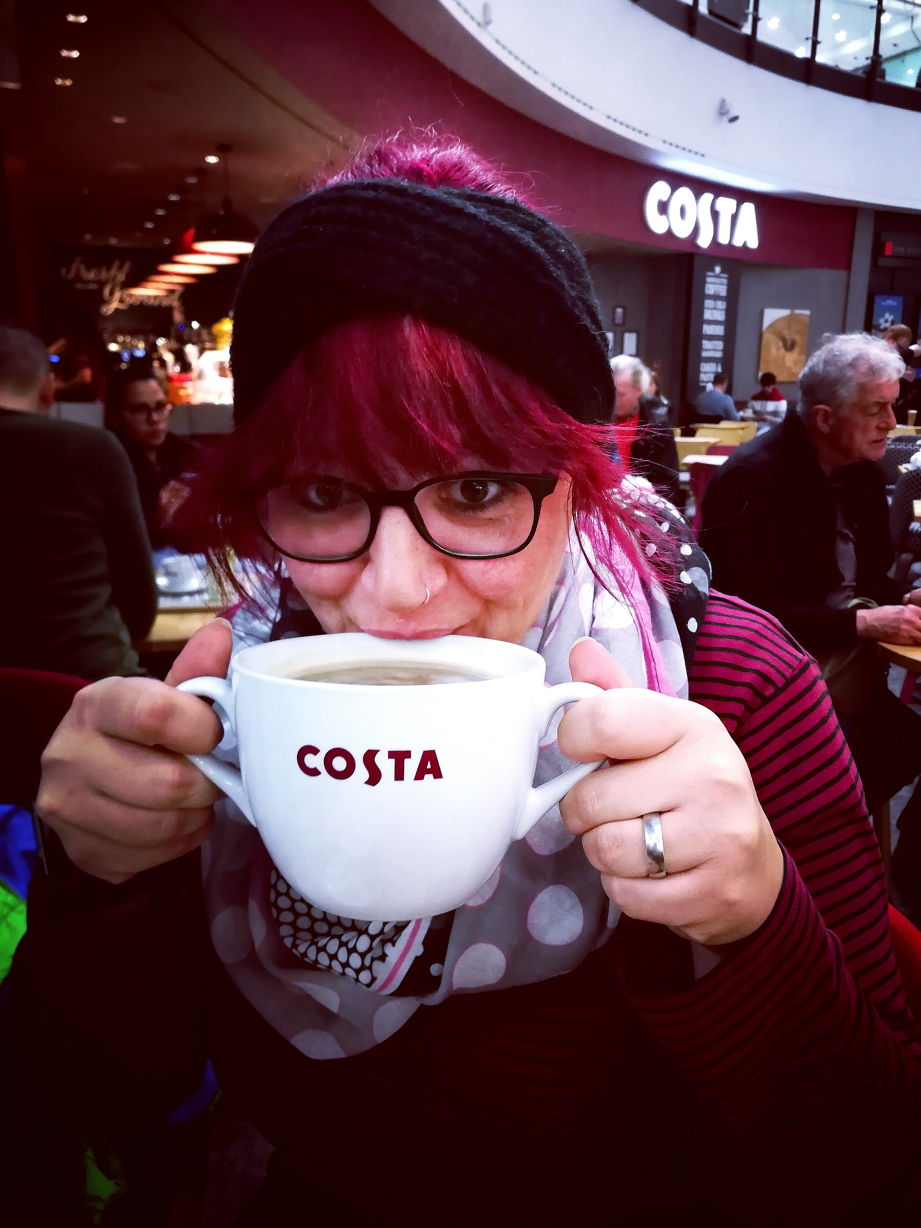 Wir standen am EuropeCar Schalter. Mietwagen. OneWay von Edinburgh nach Manchester. 5 Std. fahrt. Papa regelt. Gebucht! Danke Papa! Wir haben’s geschafft. Ab zum Check-In und danach Frühstücken. Also es gab Bier. Das Stresslevel sank.