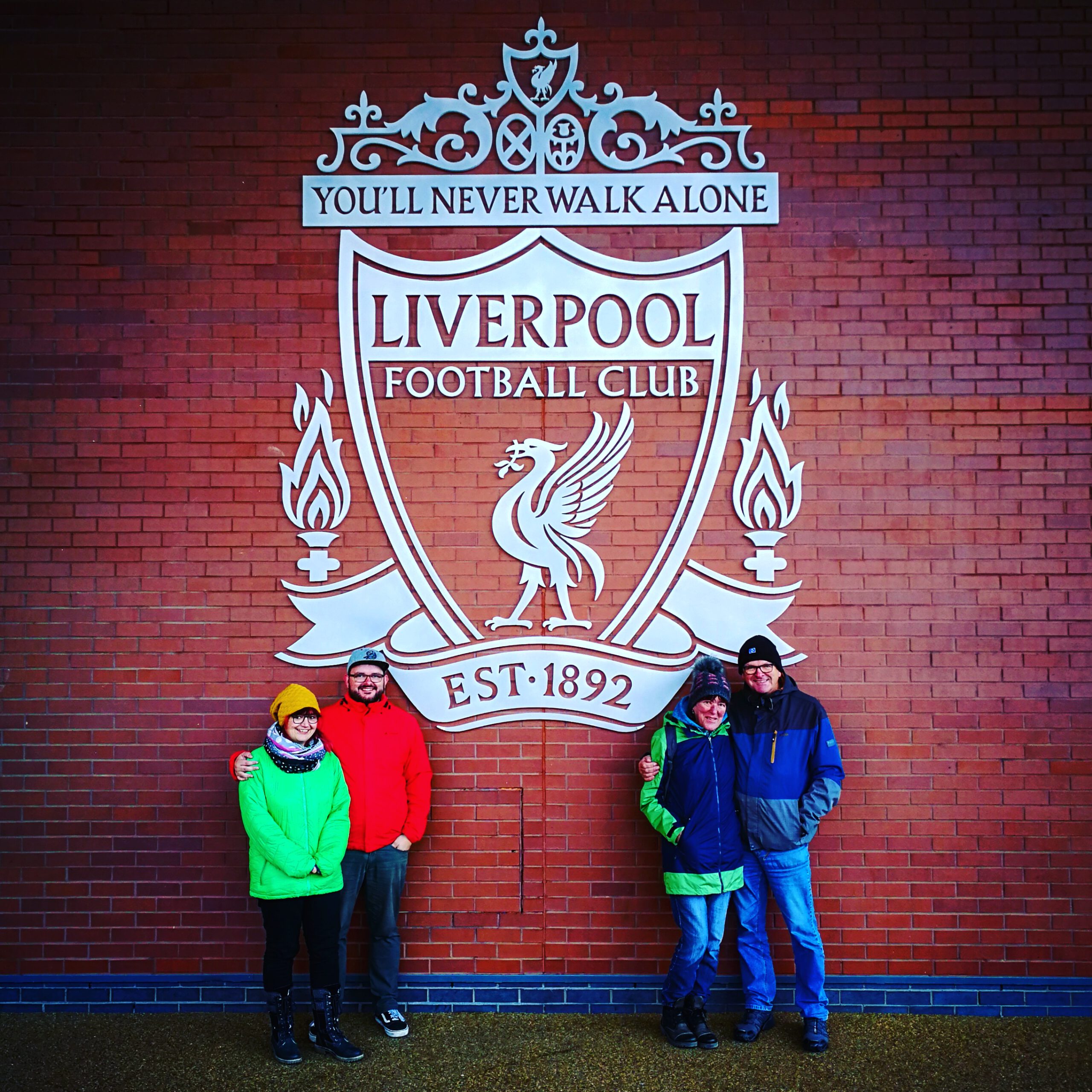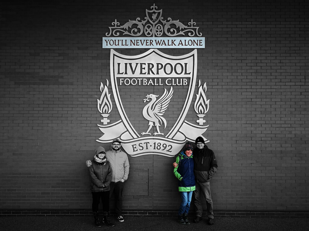 Wie erwähnt brachen wir am nächsten Morgen mit dem Zug auf in Richtung Liverpool. Das Spiel stand ja schließlich morgen auf dem Plan. Nach Ankunft und Check-In im dortigen Hotel ging es für uns… na? Ihr ahnt es sicherlich schon… natürlich direkt mit der ganzen Sippe an die Anfield Road. Natürlich wollten sich das meine Mutter und Hoochi nicht entgehen lassen, wenn sie am morgigen Spieltag schon nicht hier sein können.