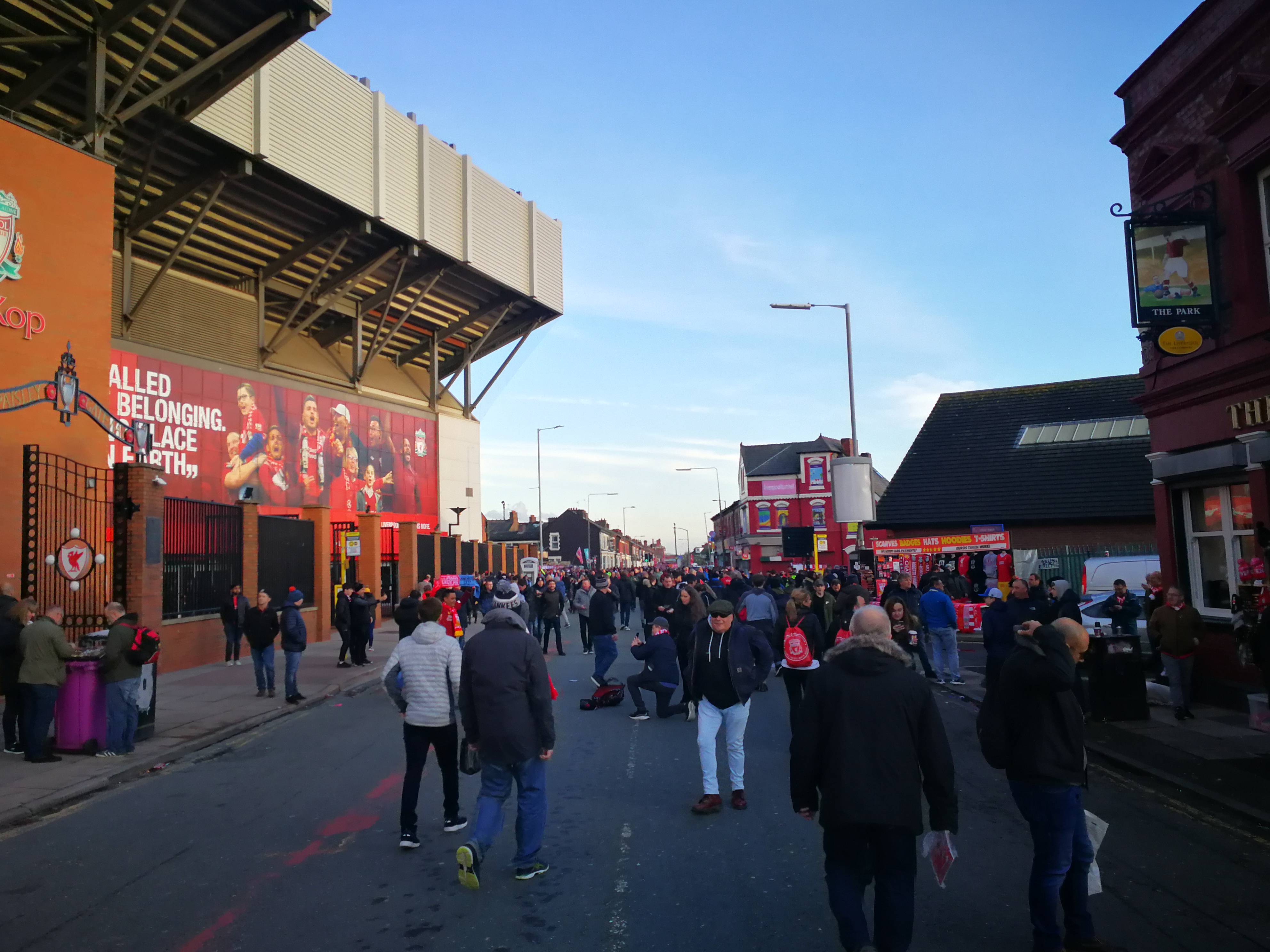 *FUCK YEAH!* Am Ende hätte mein Vater natürlich jedes andere Spiel auswählen können. Konnte ja zu dem Zeitpunkt keiner wissen, dass wir uns ausgerechnet in der Saison ein Spiel ansehen, an dem Liverpool Geschichte schreiben, jedes Heimspiel gewinnen und am Saisonende nach 30 Jahren wieder den Meistertitel feiern werden. Was wir natürlich auch noch nicht wissen konnten, dass es quasi die letzte Möglichkeit war, bevor uns ein paar Wochen darauf so eine ekelhafte Pandemie aufsuchen sollte… *zwinker*