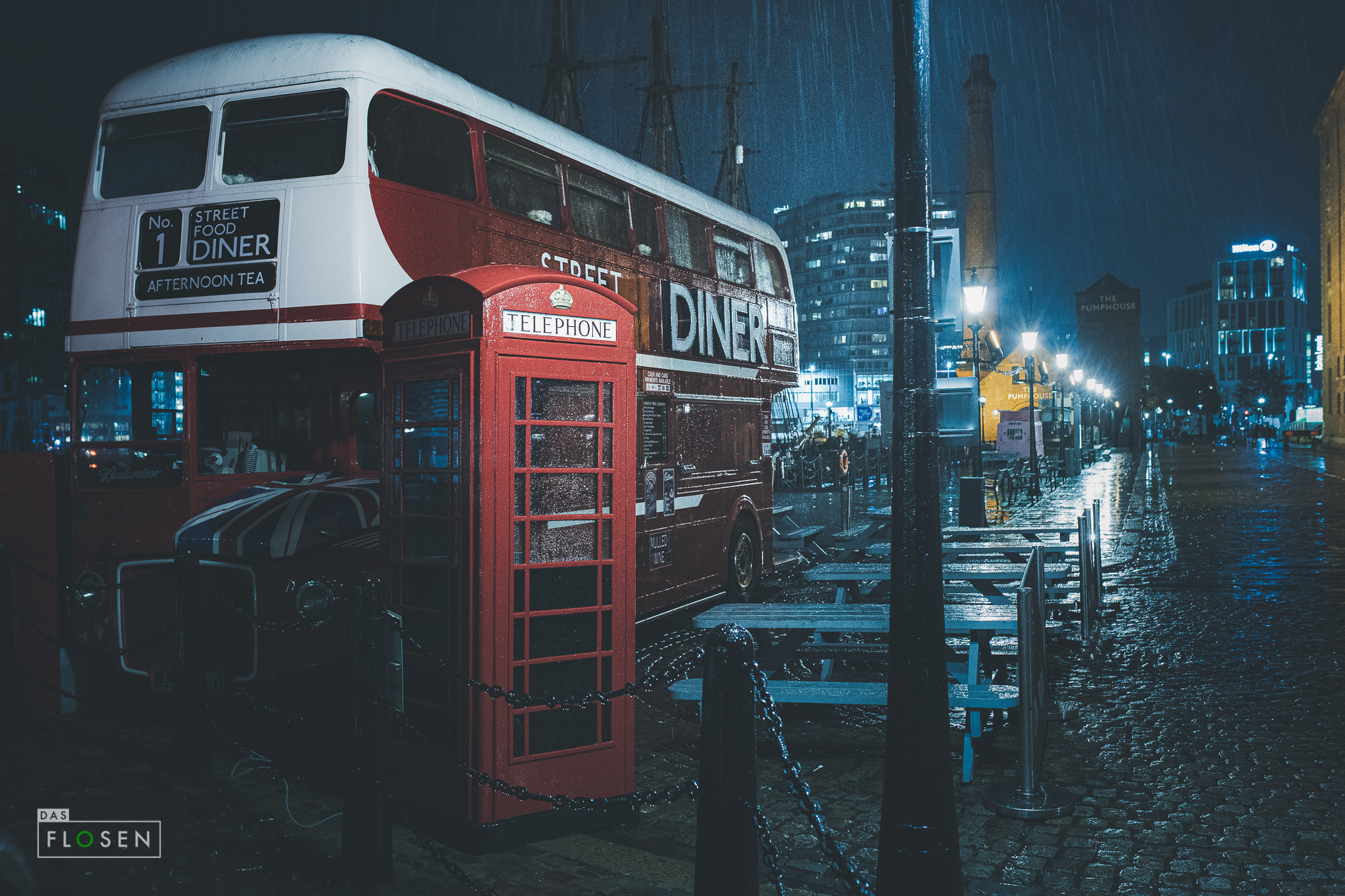 Wir verließen nach ein paar Stunden Anfield wieder und machten uns auf den Weg in die Innenstadt von Liverpool. Nach einem ausgiebigen Abendessen im „Jürgens“… ja, der Pub hieß tatsächlich so und ja die Fussballverrücktheit zum LFC kennt in dieser Stadt kaum Grenzen, liefen wir ein wenig den Hafen entlang.