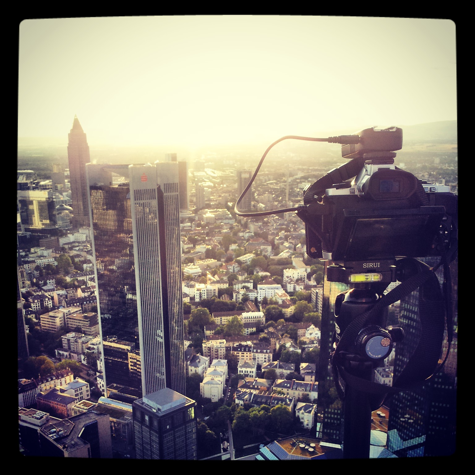 quitierte, waren wir endlich angekommen. Großstadt. Es war kurz vor Sonnenuntergang, also machten wir uns direkt auf den Weg zum Maintower. Oben angekommen gabs dann erstmal nur eins – „wow“. Ich persönlich mag Großstädte als richtiger Landmensch eigentlich nicht wirklich, aber so für ein paar Stunden oder mal für ein Wochenende ist das echt okay und faszinierend. Auf der Plattform des Towers herrschte ziemlicher Betrieb. So ziemlich Jeder, der in irgendeiner Form eine Knipse bedienen konnte, war anwesend. Da ich in Städten immer mit der Mentalität „Der sieht mich nie mehr“ lebe, habe ich mir dann einen Platz an der Sonnenseite erkämpft und ihn den kompletten Aufenthalt verteidigt. Kurz nach Einbruch der Dunkelheit und ein paar Nachtaufnahmen später, ging es weiter.
